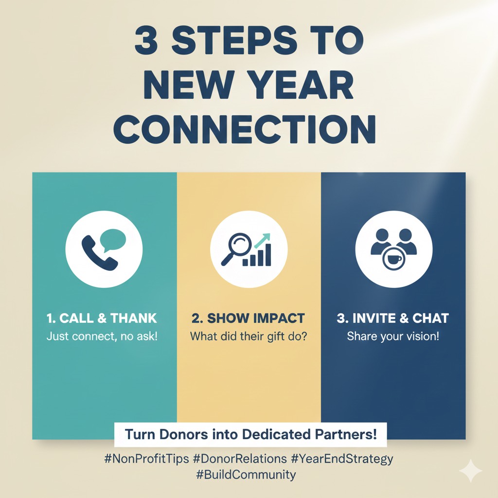 The transition from December to January doesn’t have to feel like a crash. We need to shift our perspective. The end of the holiday “break” does not have to come with that heavy, “Year End Hangover” feeling. Instead, it can come with New Year Anticipation. Think about the shift in energy when you stop worrying about the “ask” and start focusing on the “impact.” When you spend your January reconnecting with the people who make your work possible, you aren’t just doing administrative tasks, you are refueling your own tank. You are reminding yourself that you aren’t in this alone.